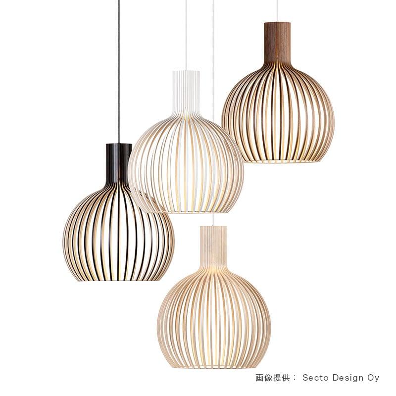 フィンランド人建築家、セッポ・コホによりデザインされたペンダントライト。ハンドクラフト製の木製ランプシェードは軽やかな印象で、空間に美しい光の印象を作る。¥191,400 /セクトデザイン