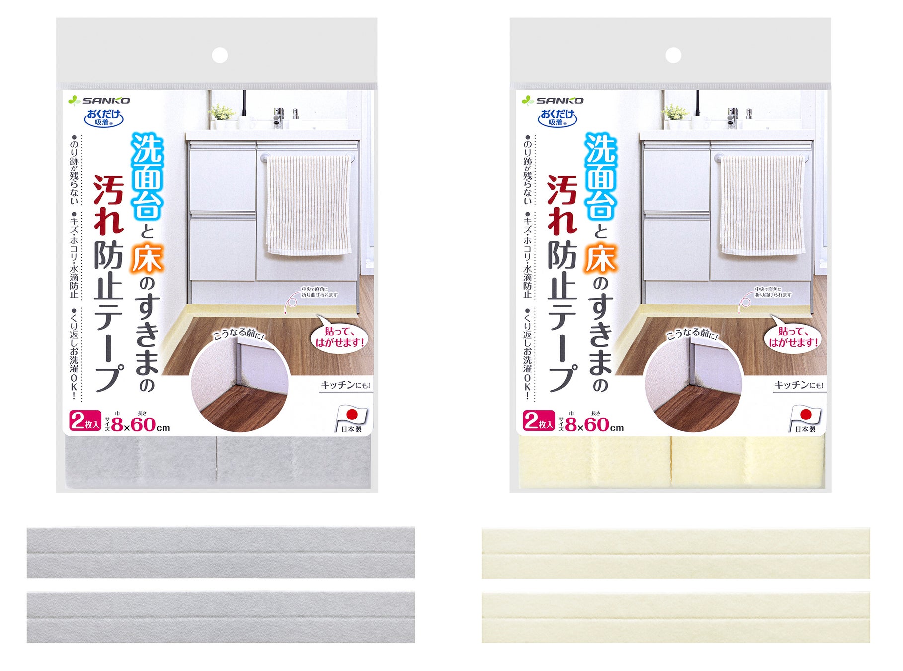 生活サポート用品を開発、製造、販売する株式会社サンコーは、洗面台と床の隙間をカバー出来るグッズ『おくだけ吸着洗面台と床のすきまテープ』を2023年1月21日に新発売します。
