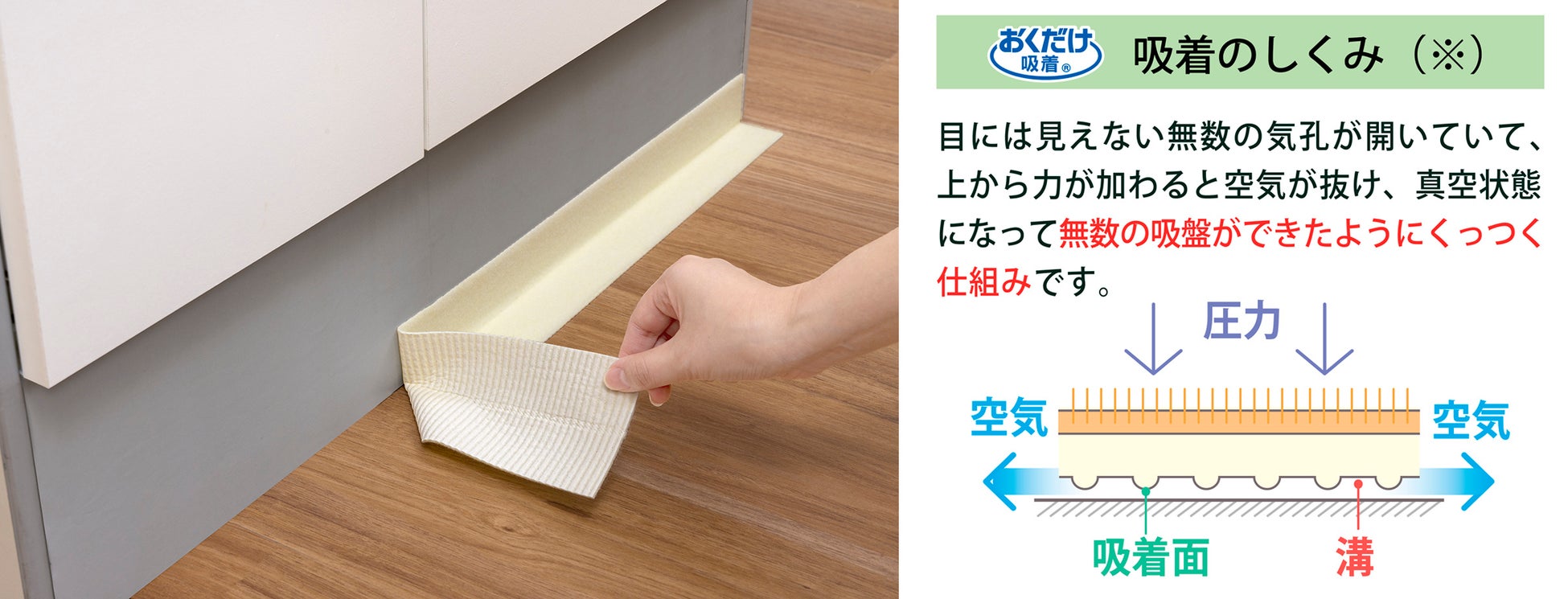 商品名:おくだけ吸着洗面台と床のすきまテープ