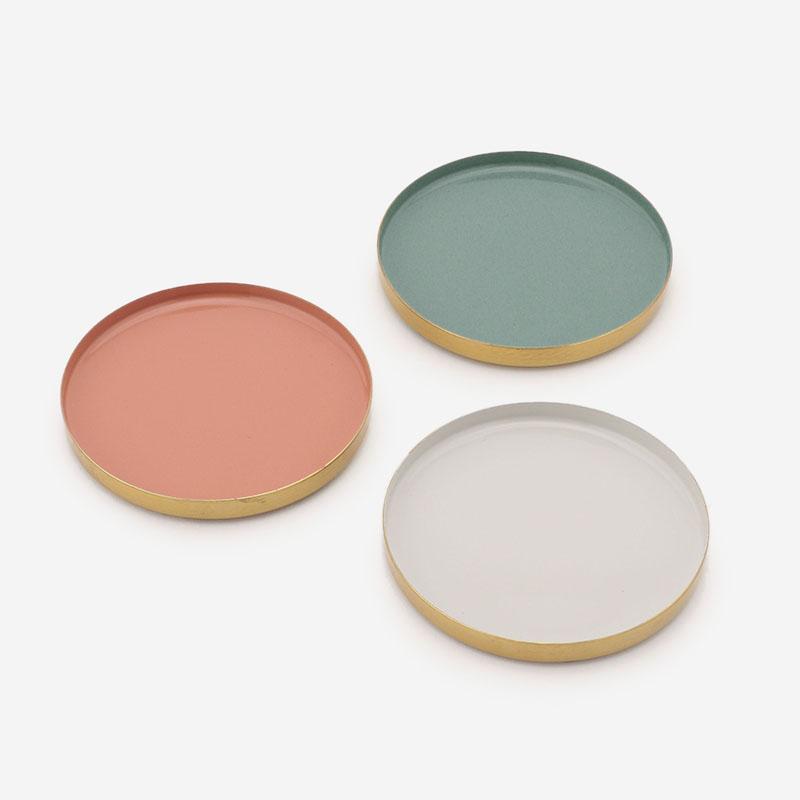 アイアン素材のプレートを成型し外側をゴールド色ニッケル塗装、内側をエナメル塗装で仕上げたアクタスオリジナルのインテリアトレー。