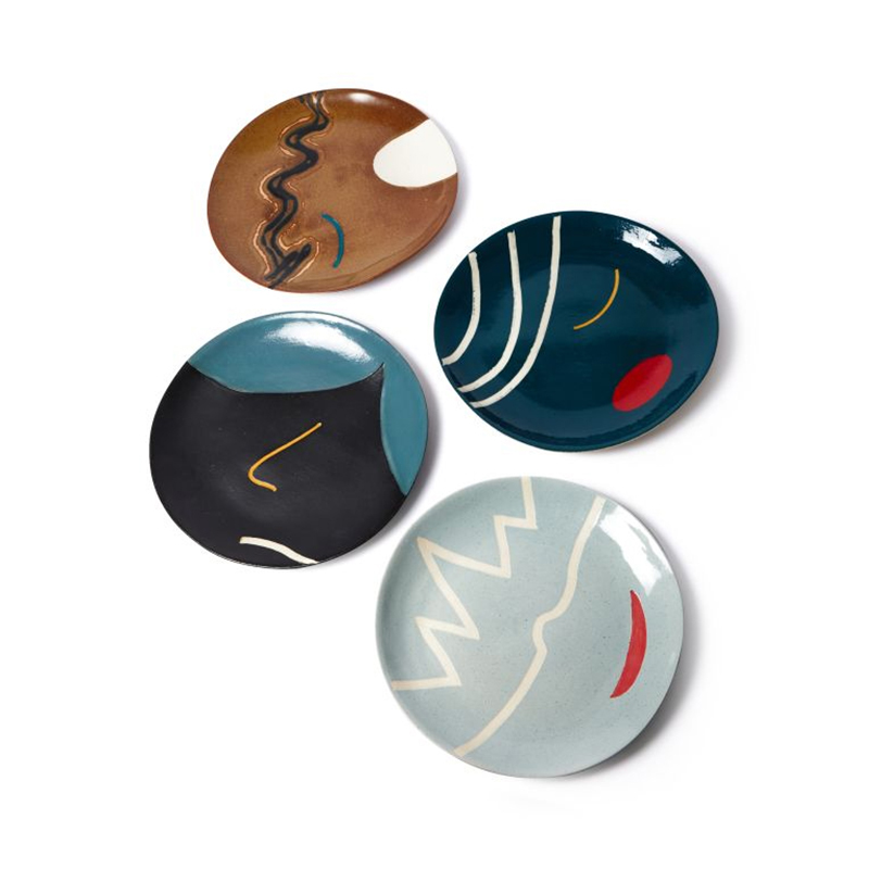 4種類それぞれカラーや質感、グレージング(釉薬)で遊び現代的でユニークなデザインに落とし込まれている。新しさと伝統という相反するテーマの遊び心溢れるウォールプレートは、そのままアート作品としてスタンドに立て掛けたり、アクセサリーなどのトレイとしても使用可能だ。¥13,200/コンランショップ