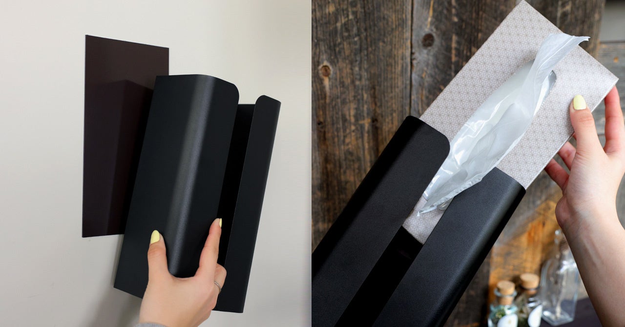 マグネット付きで簡単収納。マットな質感のブラックとシンプルなデザインで空間に馴染む。 実用性がありながら「生活感」を隠して一気にオシャレな雰囲気に。