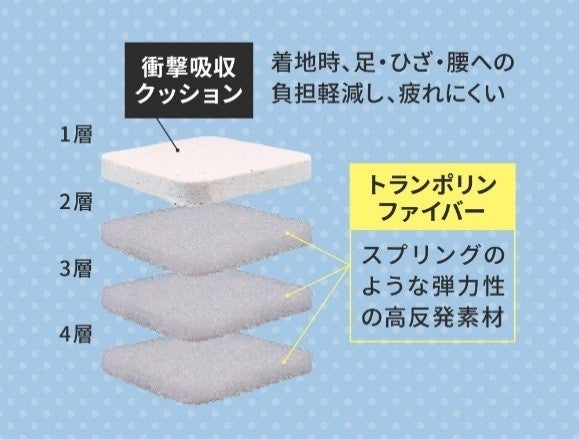⇒中材に衝撃吸収クッションと弾力性の高いクッションを使用した4層構造。
