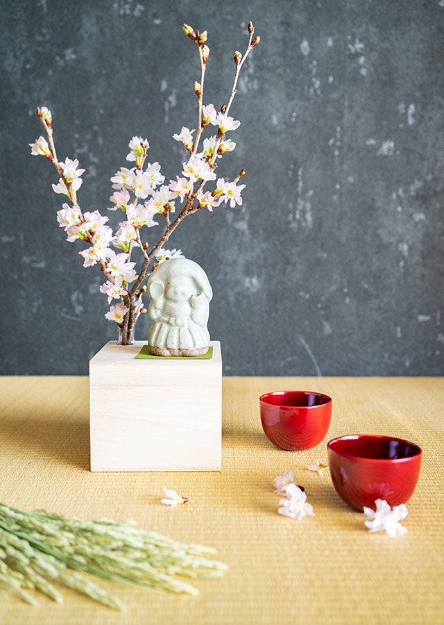 花見の起源をめぐる桜の室礼として、指宿長太郎焼窯元が手がける「タノカンサァ」と桐箱と桜のギフト、桐箱に収めおうち花見の情景を2022年2月14日(月)に発売する。