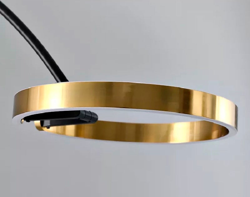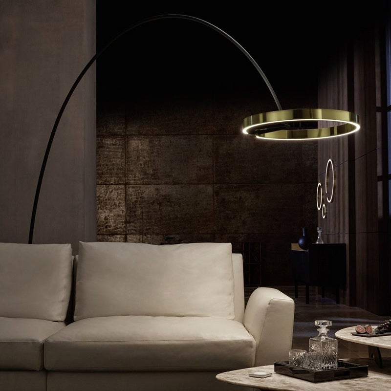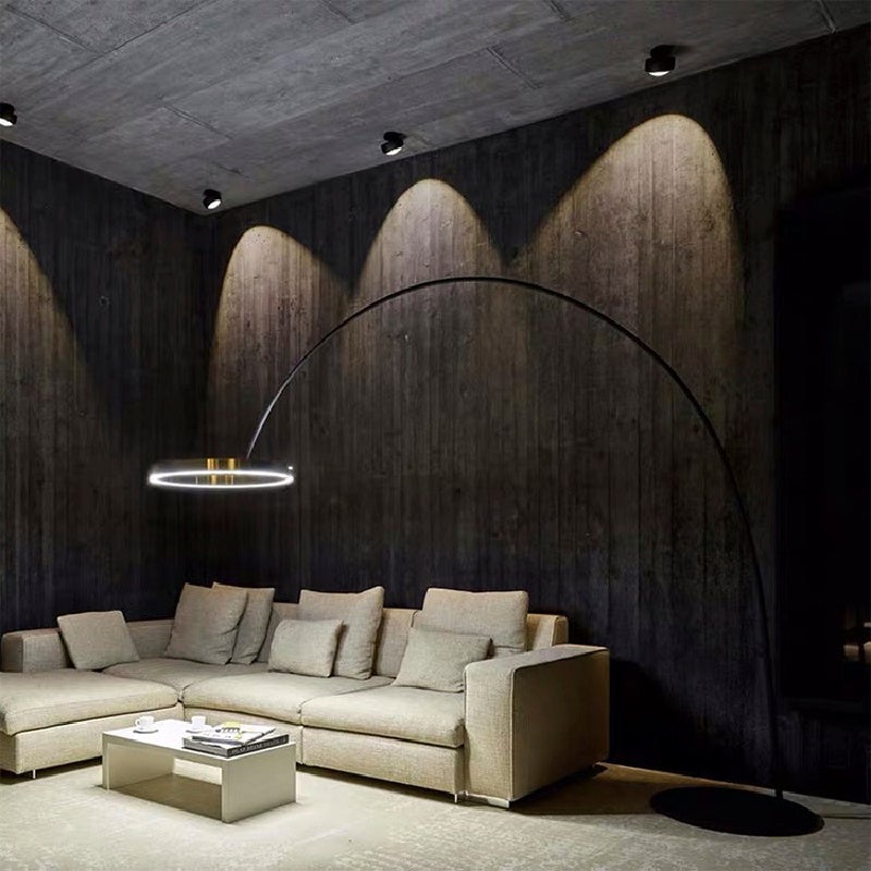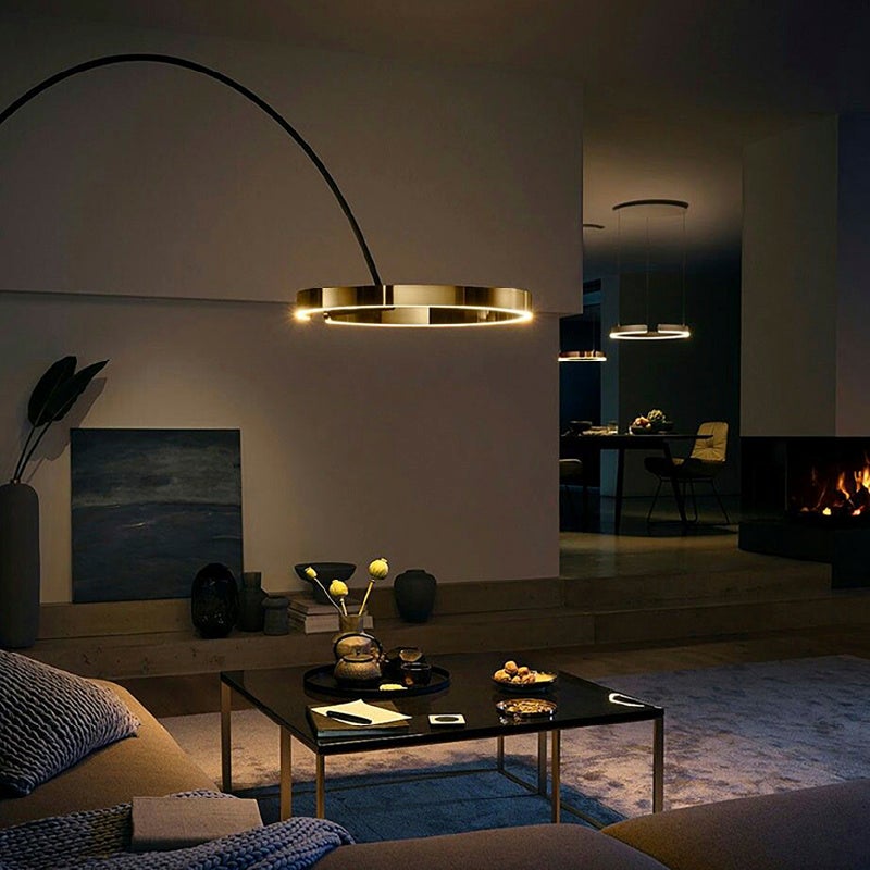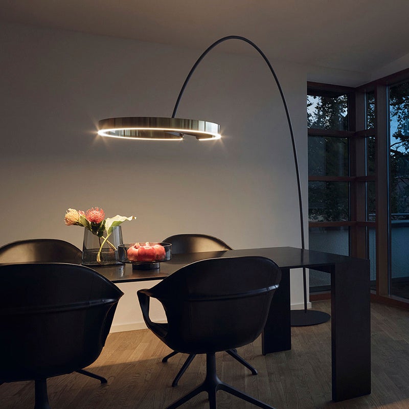 しっかりとしたアーチ型のパイプで円形のシェードが吊り下げられており、洗練されたアートのような印象のデザインです。