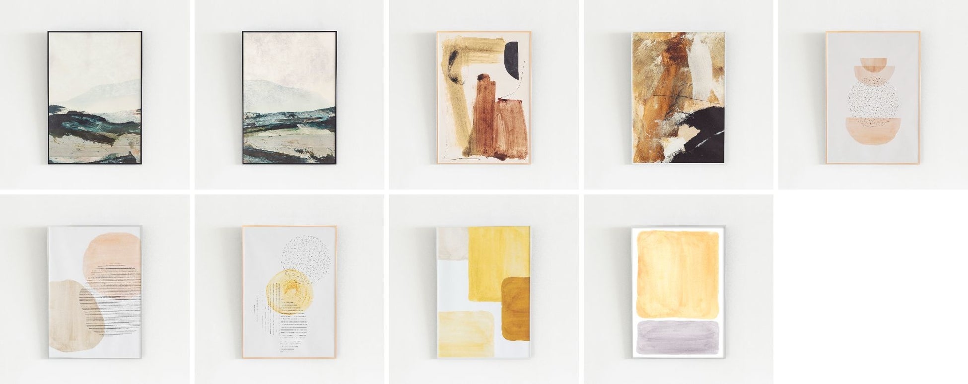 今回リニューアルするフレームに組み合わせ可能なアートポスターは、9種類ご用意しました。フレームのデザイン追加に先駆けて、2021年12月より展開しています。これらの既存の抽象系のアートを新しいフレームに合わせて選ぶことができ、セットで販売します。