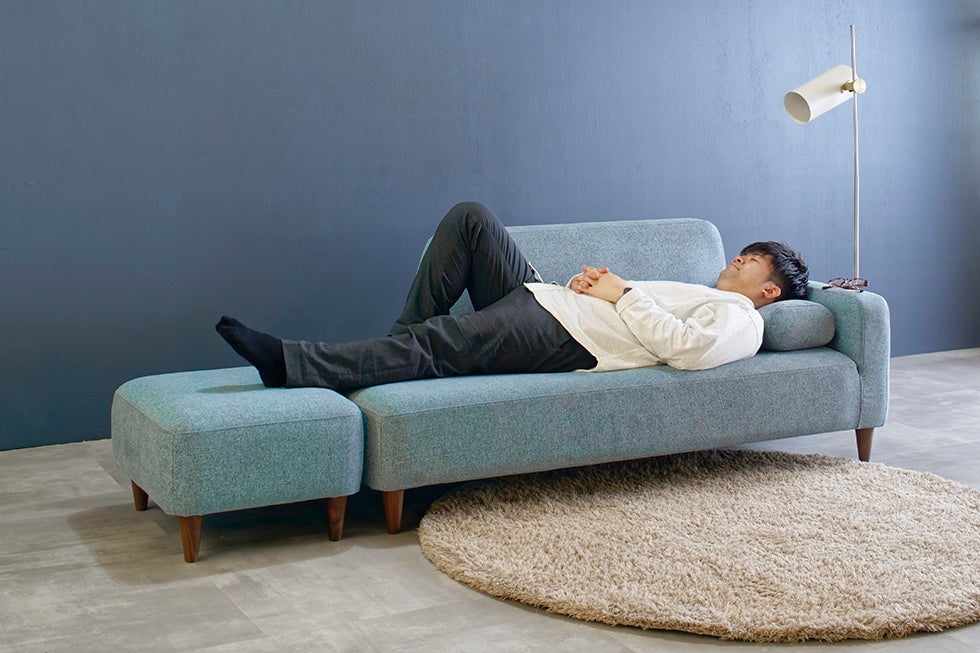 ランバーサポートを枕にし、ソファ単体なら膝を曲げて、デイベットのように、オットマンを使用すると成人男性でも足をのばして横になることが出来ます。