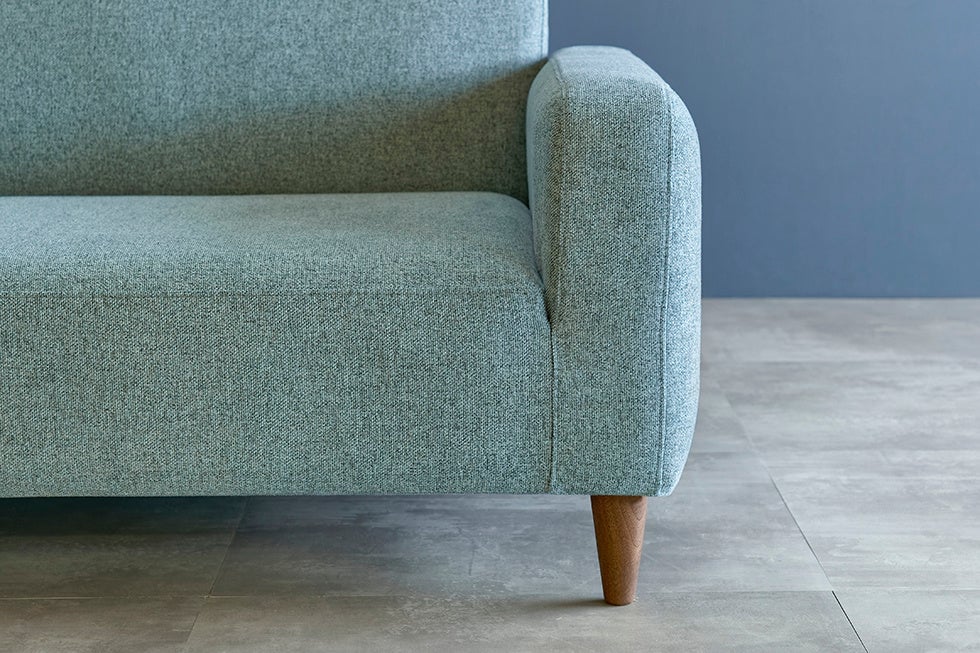 片肘は空間に対しての圧迫感を軽減しますが、背やシートの角を丸くすることでその効果を高め、愛らしいフォルムにしました。オットマンと組み合わせ、片肘ソファとは思えない豊かなソファライフをお送りください。