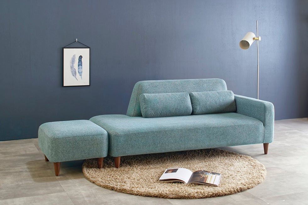 オットマンを加えるとカウチ的な使い方もでき、横にも縦にも奥行きが広がります。使い方のバリエーションが豊富で、コンパクトながら機能的に使えるソファです。