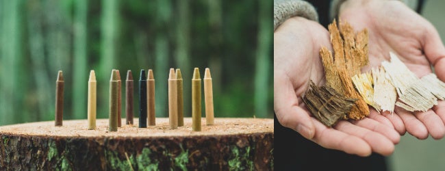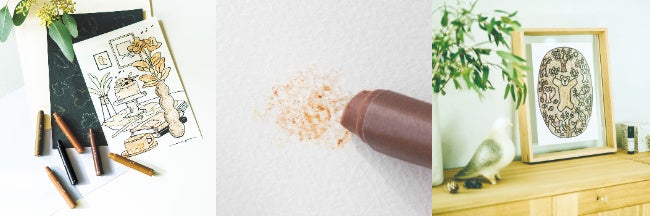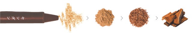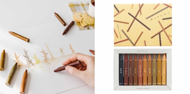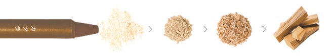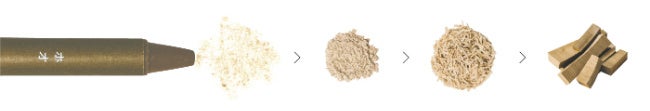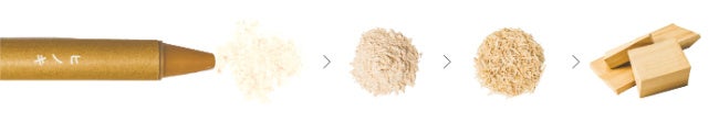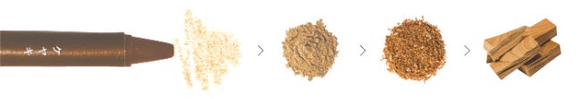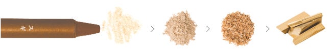 す着色料は使用せず、国内で採れた木材の粉と、米ぬか由来の原料を着色料は使用せず、国内で採れた木材の粉と、米ぬか由来の原料を混ぜた、100%日本の木の色だけで作られたクレヨン。