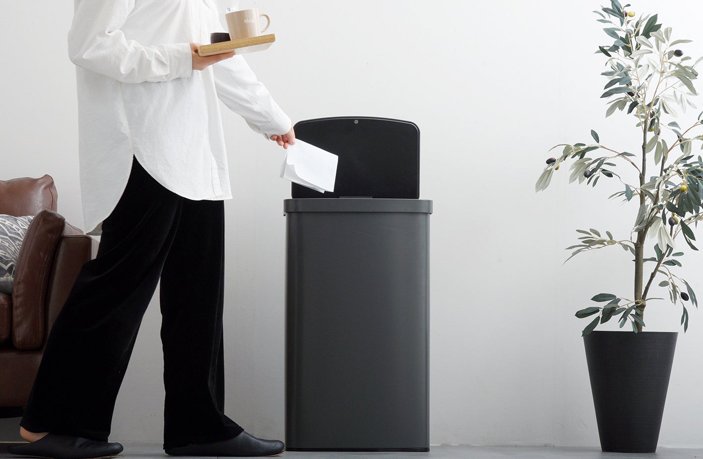自動開閉ゴミ箱の前を通っただけで開くのは、衛生面や電力消費の面で問題があります。