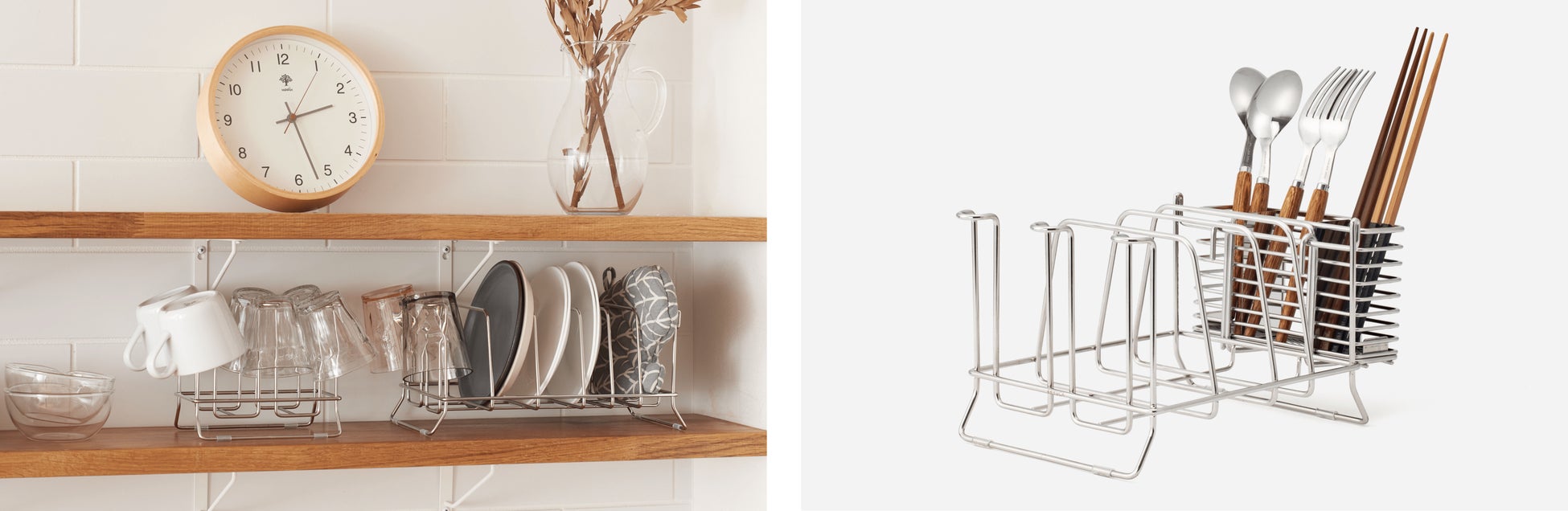 さらに、「水切りスタンド」としての役割だけでなく、棚の中でもご利用いただけるサイズのため、食器の整理や「見せる収納」としてもおすすめのアイテムです。