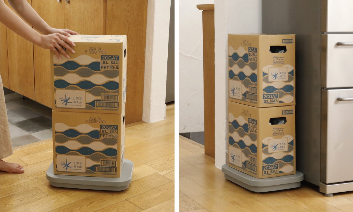 玄関先に「ホームカート」を常備しておけば、玄関から室内へ食品や飲料水を簡単に移動することが出来ます。