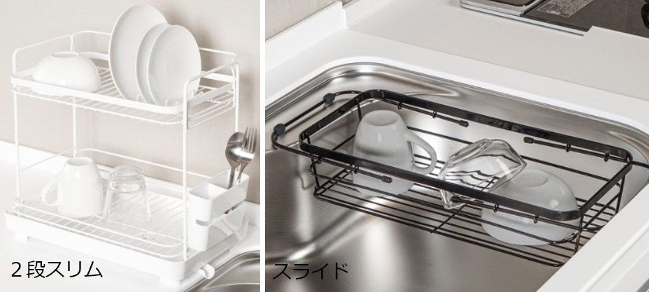 この度ニトリは、お客様の声にお応えして、本体スチールにはさびにくいWコート加工をし、トレーや箸立て、排水口には抗菌加工がされた水切りを開発しました。