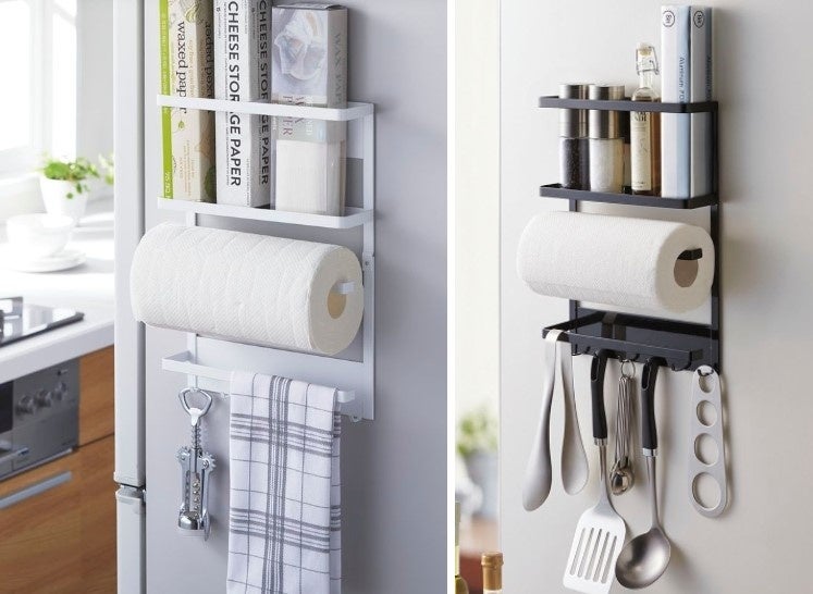 累計32万個以上販売した、マグネット冷蔵庫マルチラック。ラップやキッチンペーパーなどよく使うものを1か所にまとめて収納できます。サッと取りやすく、バラバラに収納し雑然としがちなキッチンをスッキリさせる便利な商品です。2022年7月に黒色の販売も開始。黒色を使用すれば、キッチン周りがよりスタイリッシュな印象に。